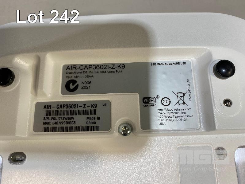2 x CISCO AIRONET 3600 SERIES WIRELESS ACCESS POINTS, AIR-CAP3602I-Z-K9 (WITH 1 x POWER INJECTOR)