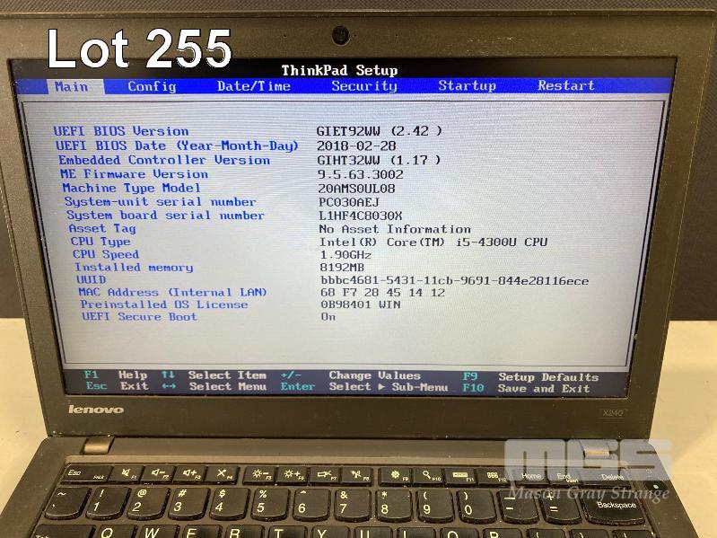 LAPTOP / ULTRABOOK, LENOVO THINKPAD X240 (20AMS0UL08), CORE i5 4300U (4TH GEN) @ 1.9GHz, 8GB DDR3 RAM, 500GB SATA HDD, 12.5" WIDESCREEN (1366x768), INTEL HD VIDEO, Wi-Fi, BLUETOOTH, WINDOWS 10 PRO INSTALLED & POWER SUPPLY (NOTE: DAMAGE TO CASING RHS, MARKS ON SCREEN) S/N:PC030AEJ