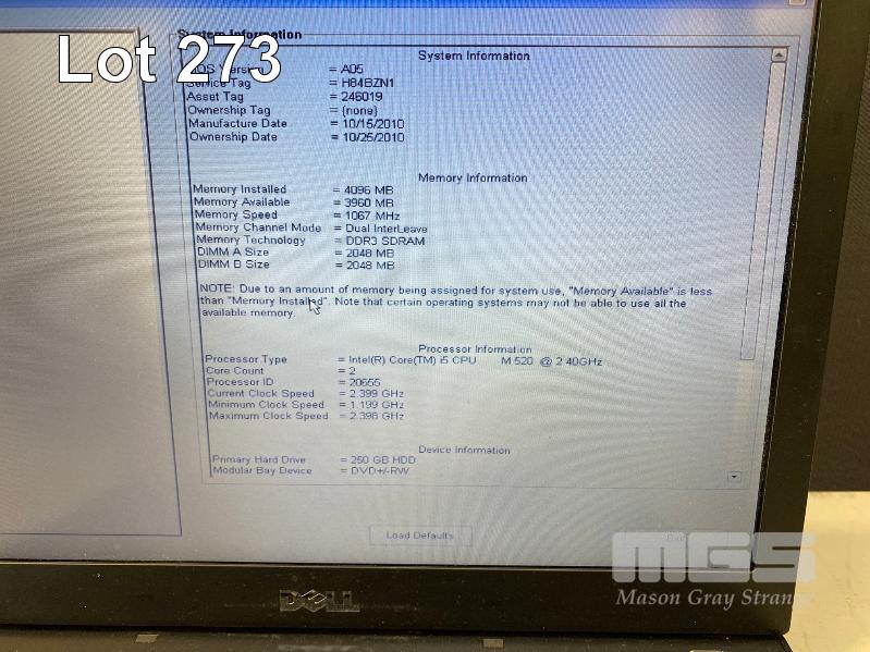LAPTOP, DELL LATITUDE E6410, CORE i5 M520 @ 2.4GHz, 4GB DDR3 RAM, 250GB SATA HDD, DVD-RW, 14" WIDESCREEN & POWER SUPPLY S/N:HB4BZN1