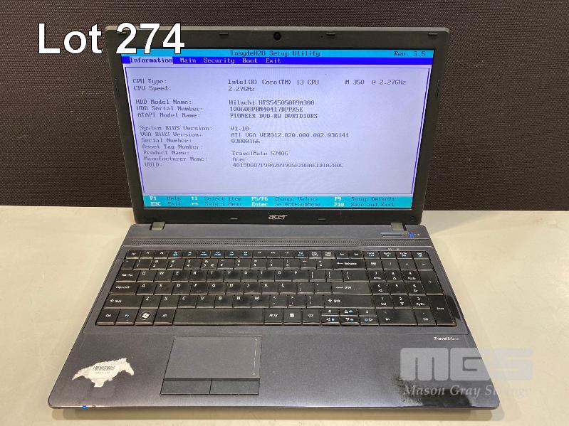 LAPTOP, ACER TRAVELMATE 5740G, CORE i3 M350 @ 2.27GHz, 4GB DDR3 RAM, 500GB SATA HDD, DVD-RW, 15.6" WIDESCREEN