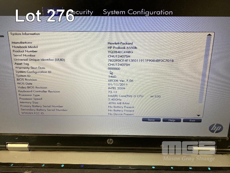 LAPTOP, HP PROBOOK 6550b (YQ284EC), CORE i5 M520 @ 2.4GHz, 4GB DDR3 RAM, 250GB SATA HDD, DVD-RW, 15.6" WIDESCREEN (1366x768), INTEL HD VIDEO, Wi-Fi, BLUETOOTH, WINDOWS 7 PRO INSTALLED W/ LICENSE & POWER SUPPLY (NOTE: NOT DETECTING BATTERY) S/N:CNU12407SH
