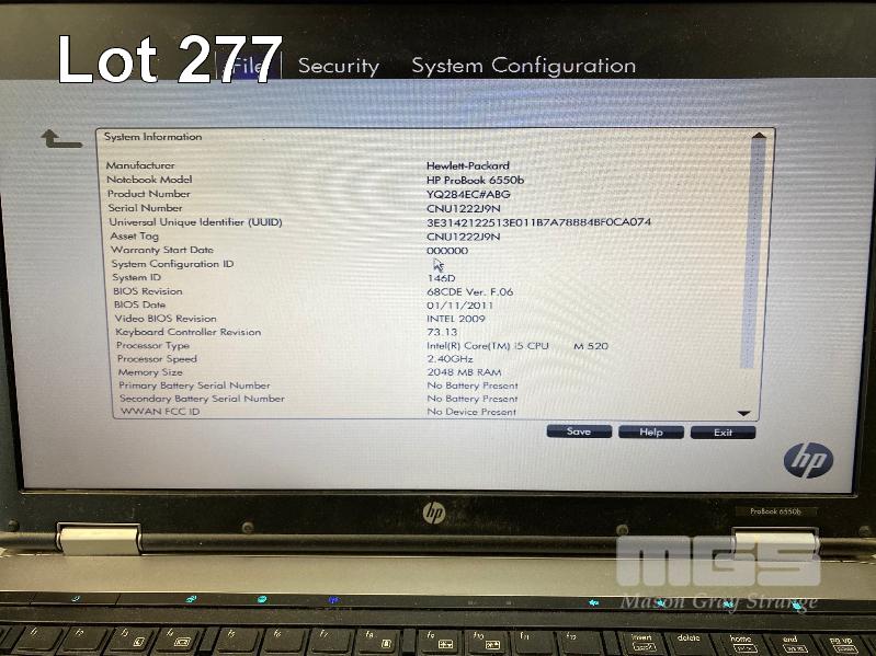 LAPTOP, HP PROBOOK 6550b (YQ284EC), CORE i5 M520 @ 2.4GHz, 2GB DDR3 RAM, 250GB SATA HDD, DVD-RW, 15.6" WIDESCREEN (1366x768), INTEL HD VIDEO, Wi-Fi, BLUETOOTH, WINDOWS 7 PRO INSTALLED W/ LICENSE & POWER SUPPLY (NOTE: NOT DETECTING BATTERY) S/N:CNU1222J9N