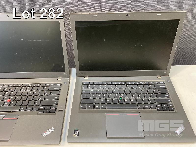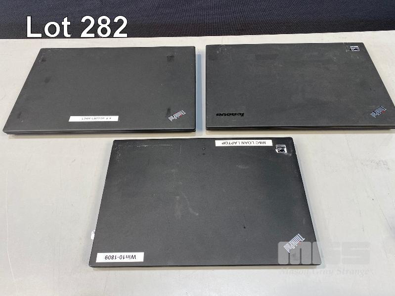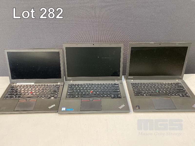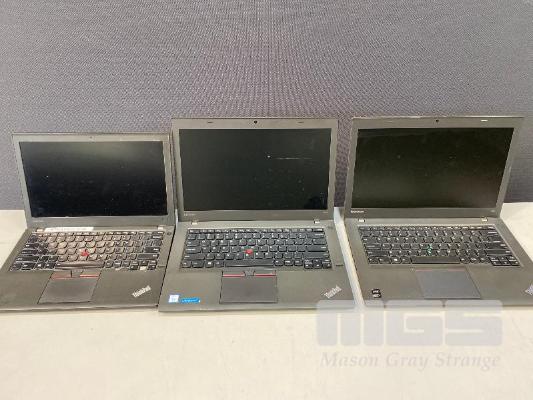 3 x LAPTOPS INC. LENOVO THINKPAD X260, UNKNOWN, NO RAM, NO HDD (FAULTY, MISSING BATTERY LATCH) LENOVO THINKPAD T460, UNKNOWN, NO RAM, NO HDD (DAMAGED SCREEN, NO DISPLAY) LENOVO THINKPAD T440, CORE i5 4300U @ 1.9GHz, 8GB RAM, 500GB SATA HDD (FAULTY, NOT POWERING ON) (NO POWER SUPPLIES) S/N:PC0E5CD4, PC0K5WE6, PC02M0HA