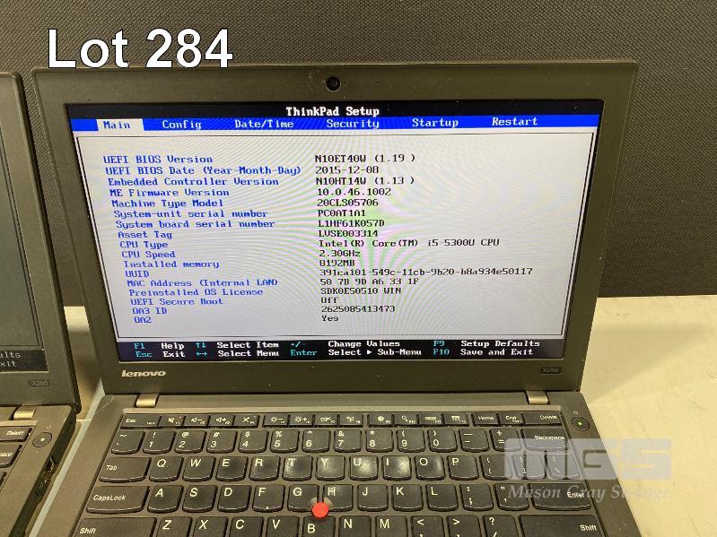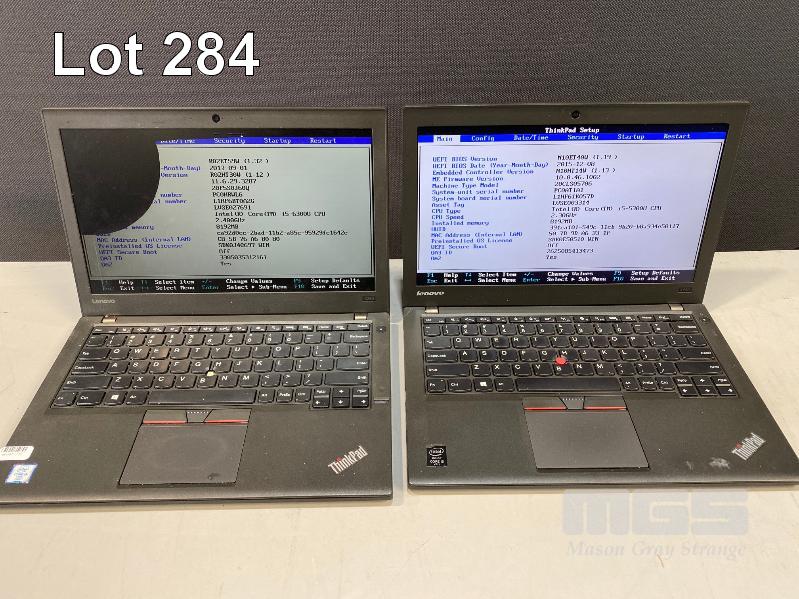 2 x LAPTOPS INC. LENOVO THINKPAD X260, CORE i5 6300U @ 2.4GHz, 8GB DDR4 RAM, NO HDD (DAMAGED SCREEN) LENOVO THINKPAD X250, CORE i5 5300U @ 2.3GHz, 8GB DDR3 RAM, NO HDD (MINOR DAMAGE TO CASING) (NO POWER SUPPLIES) S/N:PC0HRWL6, PC0AT1A1