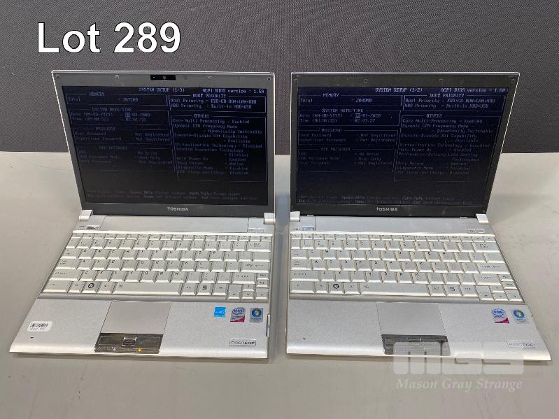 2 x LAPTOPS, TOSHIBA PORTEGE R500 (PPR50A-07R05C), CORE 2 DUO U7700 @ 1.3GHz, 2GB RAM, NO HDD TOSHIBA PORTEGE R600 (PPR61A-00300R), CORE 2 DUO U9400 @ 1.4GHz, 3GB RAM, NO HDD (WITH POWER SUPPLIES) S/N:88022234H, Y8068575H