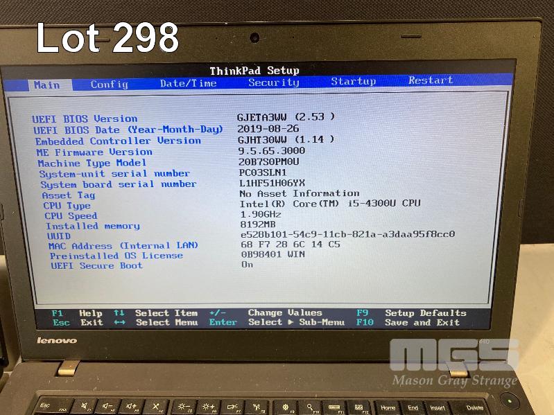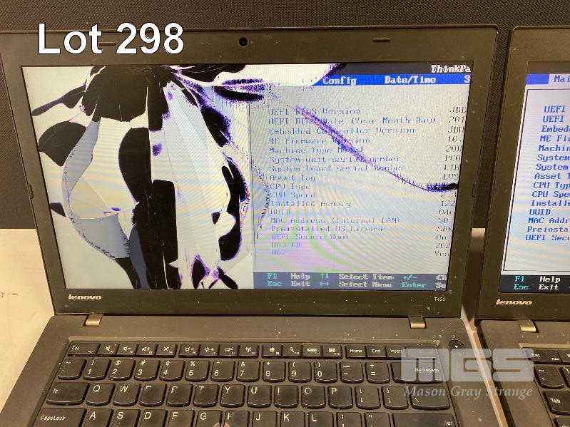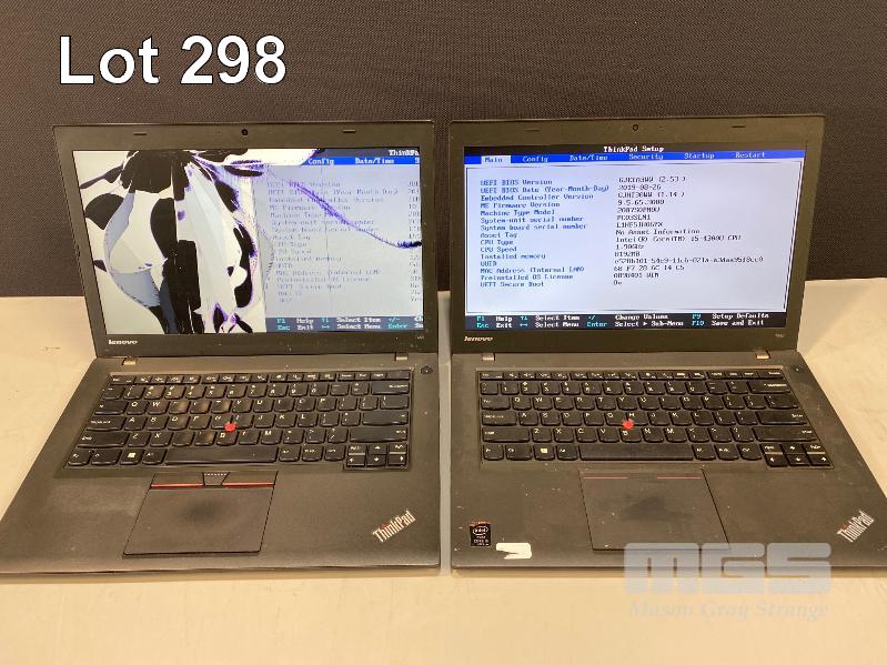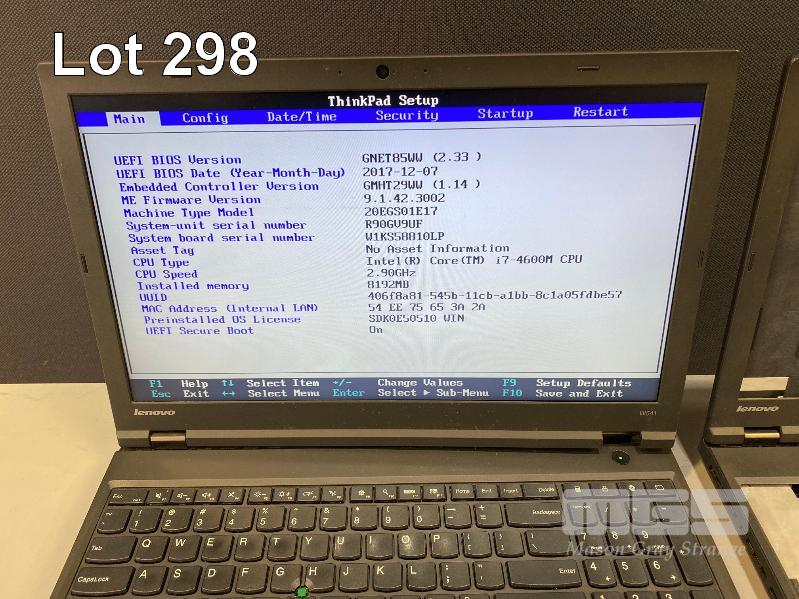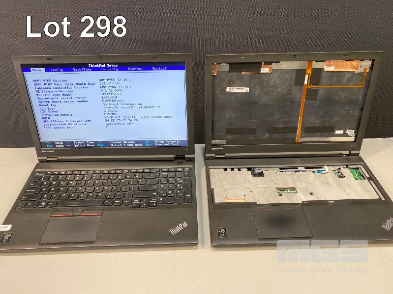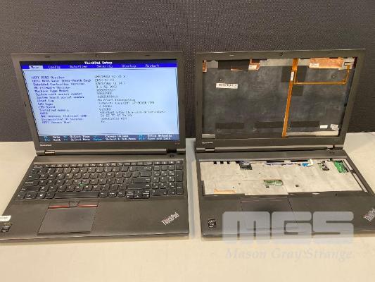 9 x LAPTOPS INC. LENOVO THINKPAD W541, CORE i7 4600M @ 2.9GHz, 8GB RAM, NO HDD, NO Wi-Fi (DAMAGE TO CASING MARKS ON SCREEN) LENOVO THINKPAD W540, INCOMPLETE, CASING ONLY, NO KEYBOARD, NO SCREEN, NO BATTERY LENOVO THINKPAD T450, CORE i5 5300U @ 2.3GHz, 12GB RAM, NO HDD (DAMAGED SCREEN) LENOVO THINKPAD T440, CORE i5 4300U @ 1.9GHz, 8GB RAM, NO HDD LENOVO THINKPAD T450, UNKNOWN, NO RAM, NO HDD (DAMAGED SCREEN) LENOVO THINKPAD T460, UNKNOWN, NO RAM, NO HDD (MISSING PARTS) LENOVO THINKPAD T460, CORE i5 6300U @ 2.4GHz, 8GB RAM, NO HDD (WILL NOT POWER ON, MISSING SOME KEYS) LENOVO THINKPAD T460, INCOMPLETE, CASING ONLY, NO KEYBOARD, NO BATTERY LENOVO THINKPAD T440, INCOMPLETE, CASING ONLY, MAJOR DAMAGE CASING (NO POWER SUPPLIES) S/N:R90GV9UF, R90C0LKA, PC0BCPE1, PC03SLN1, PC0AKA7J, PC0DN3EP, PC0DKP49, PC0EZN39, PC037F3D