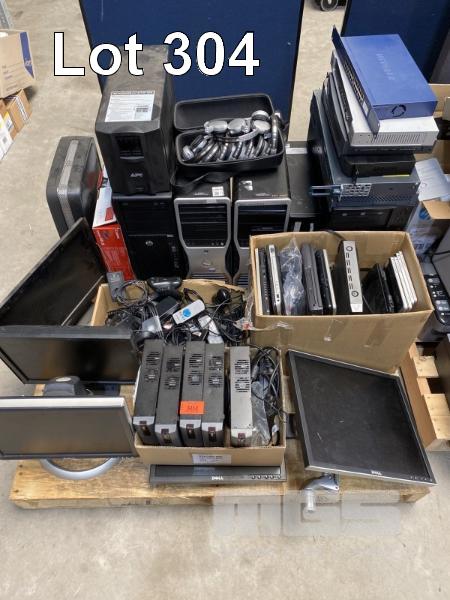 PALLET LOT ASST INCOMPLETE / DAMAGED COMPUTERS, UPS, NETWORKING, MONITORS, SCANNER, CABLES, MICE ETC