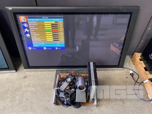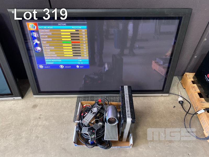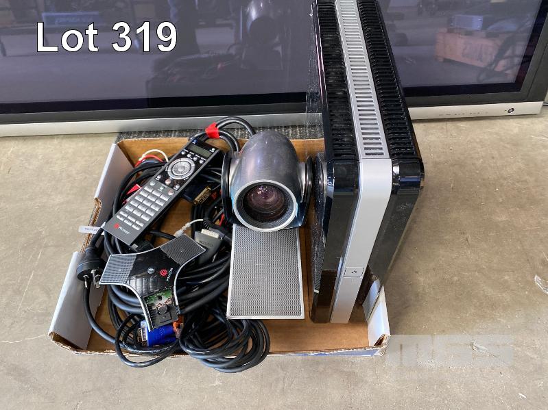 POLYCOM HDX 8000 VIDEO CONFERENCE SYSTEM INC. SAMPO 50" MONITOR (NO STAND), CAMERA, WITH 1 x REMOTE, 1 x MIC (DAMAGED)