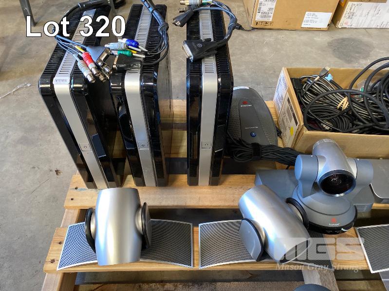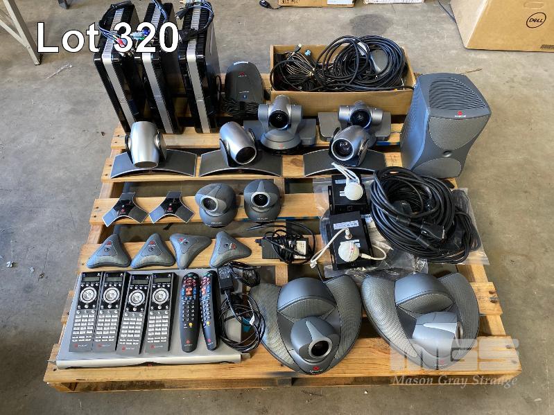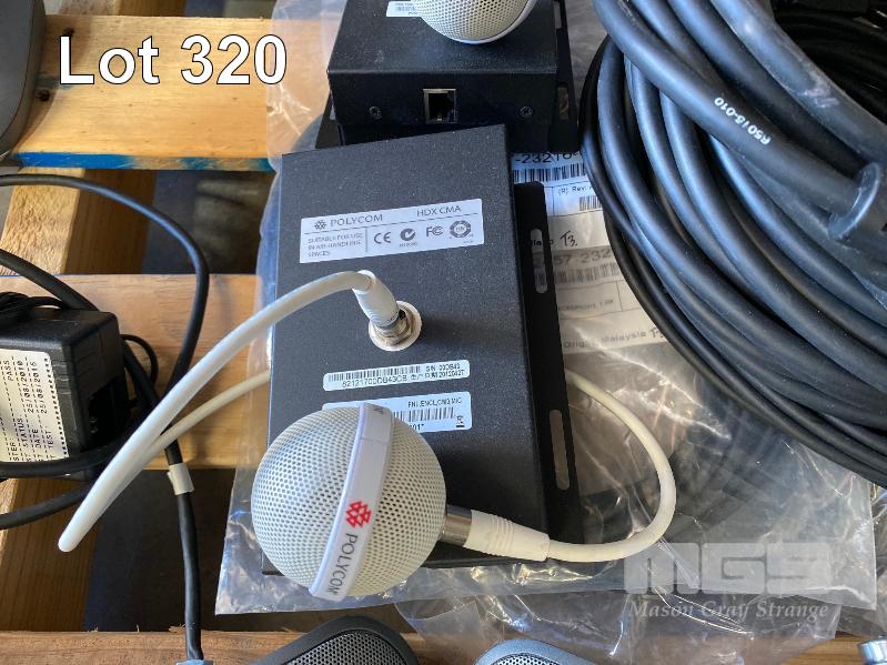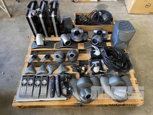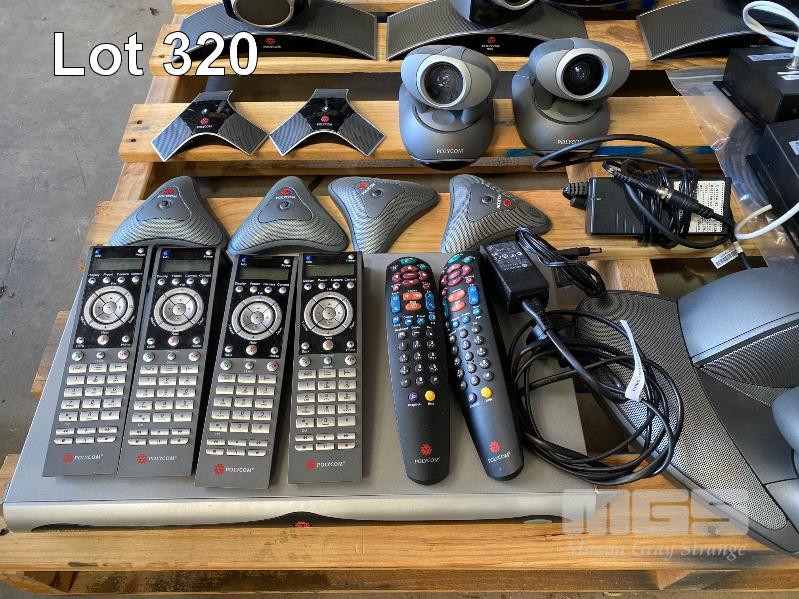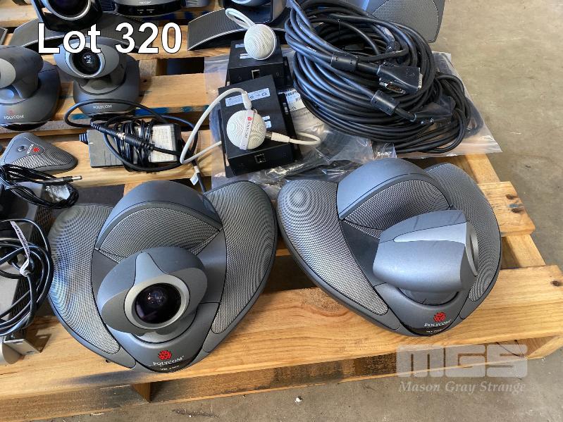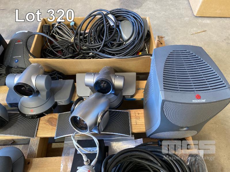 2 x POLYCOM HDX 8000 VIDEO CONFERENCE UNITS, 1 x POLYCOM HDX 7000 VIDEO CONFERENCE UNIT, 1 x POLYCOM VSX 7000 VIDEO CONFERENCE UNIT, 3 x MPTZ-9 CAMERAS, 2 x MPTZ-7 CAMERAS, 2 x MPTZ-5P CAMERAS, WITH ASST MICROPHONES, CEILING MICROPHONE ARRAY, CABLING & REMOTES (NO POWER SUPPLIES)