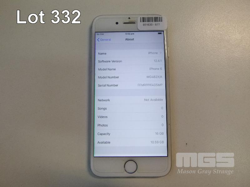 APPLE iPHONE 6, 16GB, SILVER, MODEL A1586 (NO CHARGER, NO CABLE) S/N:FFMR99E4G5MP