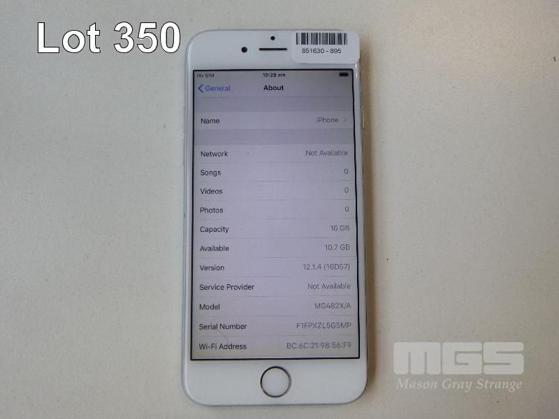 APPLE iPHONE 6, 16GB, SILVER, MODEL A1586 (NO CHARGER, NO CABLE) S/N:F1FPXZL5G5MP