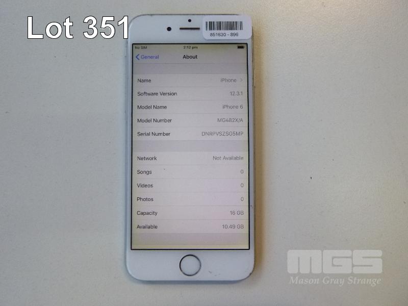 APPLE iPHONE 6, 16GB, SILVER, MODEL A1586 (NO CHARGER, NO CABLE) S/N:DNRPVSZSG5MP
