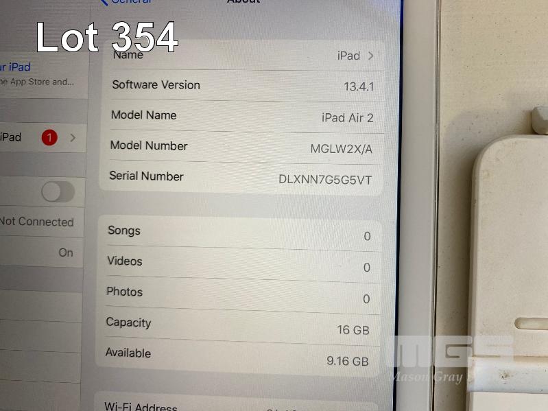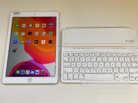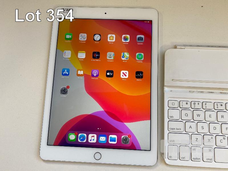 APPLE iPAD AIR 2, 16GB, Wi-Fi, SILVER, MODEL A1566 WITH LOGITECH ULTRATHIN KEYBOARD COVER (NO CHARGER, NO CABLE) (NOTE: DAMAGED LOCK BUTTON) S/N:DLXNN7G5G5VT