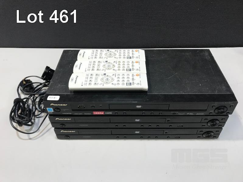 3 x PIONEER DVD PLAYERS WITH REMOTE, MODELS DV-400V-K & DV-420V-K