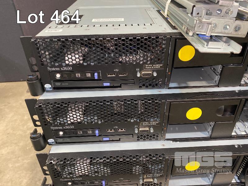 6 x RACKMOUNT SERVERS, IBM SYSTEM x3650 INC. 2 x XEON X5450 @ 3GHz, 32GB RAM, NO HDD UNKNOWN, 32GB RAM, NO HDD (NOT BOOTING) UNKNOWN, 4GB RAM, NO HDD (NOT BOOTING) 2 x XEON E5450 @ 3GHz, 12GB RAM, NO HDD UNKNOWN, 8GB RAM, NO HDD (NOT BOOTING) 2 x XEON X5450 @ 3GHz, 32GB RAM, NO HDD