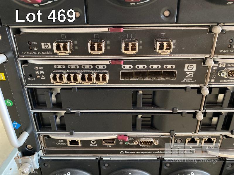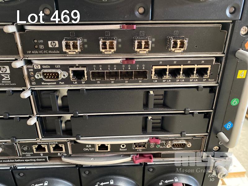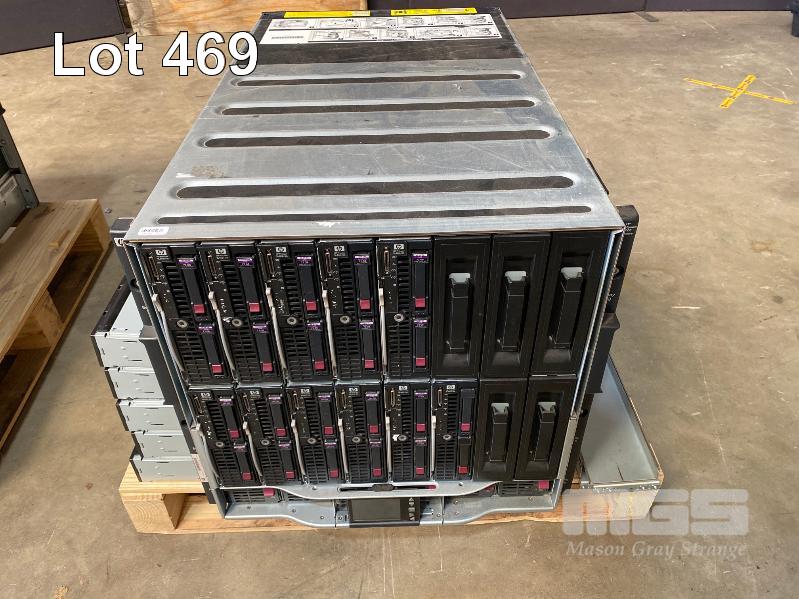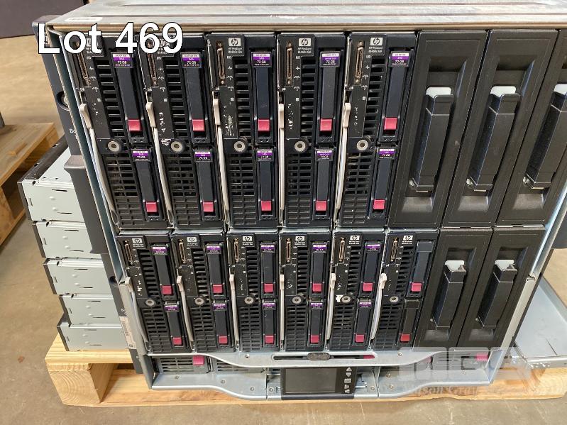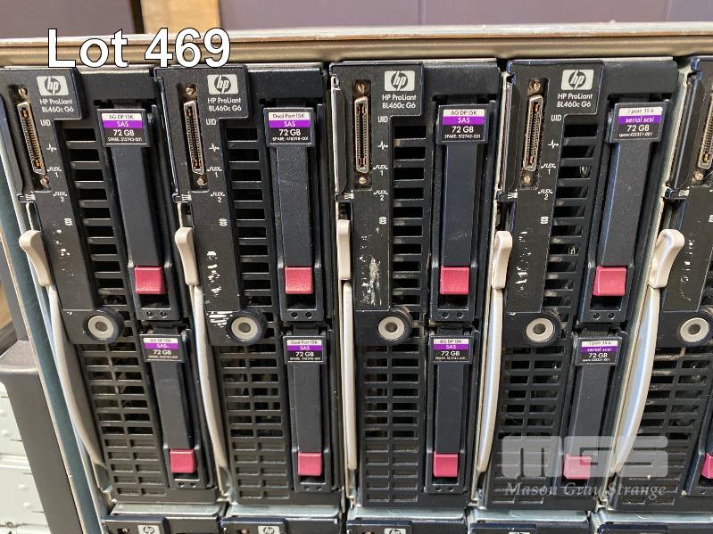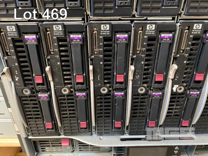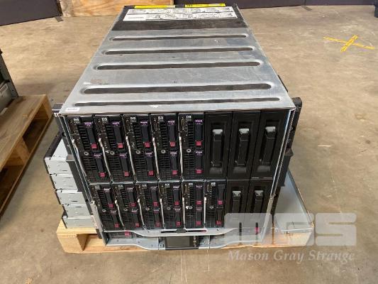 HP BLADESYSTEM c7000 ENCLOSURE WITH 11 x HP PROLIANT BL460c G6 BLADE SERVERS, EACH 2 x XEON X5650 / X5550 @ 2.66GHz PROCESSORS, 64GB ECC DDR3 RAM, VARIOUS 72GB HDD & 146GB HDD, (1 x WITH 96GB RAM) WITH RAILS (NO CABLES)