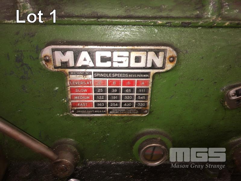 MACSON CENTRE LATHE, FLAT BED 6' BETWEEN CENTRES APPROX 18" SWING 2" BORE 25-720RPM THREAD CUTTING 16" 4 JAW CHUCK, COOLANT SYSTEM 3 POINT STEADY 4 WAY TOOL POST POWER FEEDS DRILL CHUCK TO TAIL STOCK 415V MACHINE NO: 64.48 (LOCATED AT SMITHFIELD, INSPECTION BY APPOINTMENT, CALL JOHN 0412 694 852)