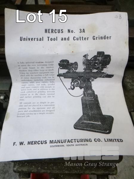 HERCUS UNIVERSAL TOOL & CUTTER GRINDER, No3 415V, POWERED HEAD 3 JAW, 125mm CHUCK TAILSTOCK & BELT DRIVE ATTACHMENTS ON STAND