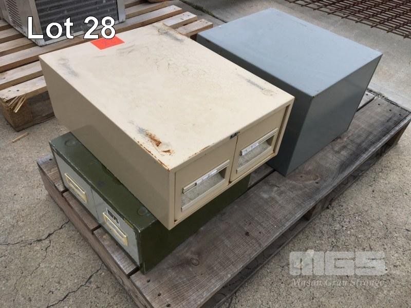 3 x SMALL METAL DRAWER SETS, 2 x 4 DRAWER