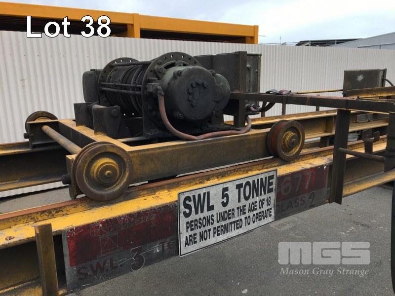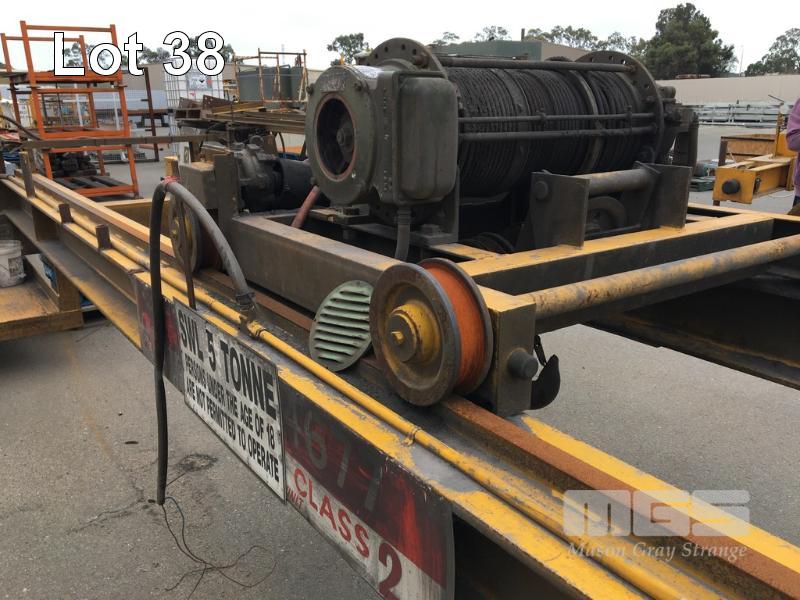 SWF 5T OVERHEAD GANTRY CRANE WIRE ROPE WINCH APPROX 8.3m WHEEL TO WHEEL PENDANT CONTROL, ALL FAULTS