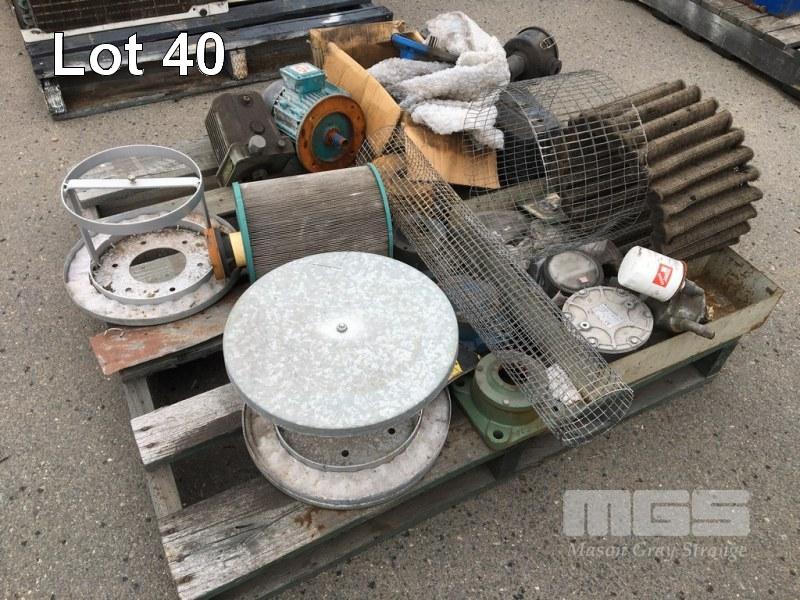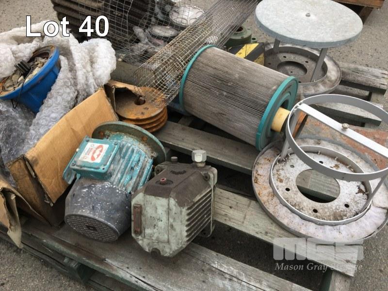 1 x CRATE ASSORTED AIR LINE & HOSES, AIR & HYDRAULIC & PARTS FILTERS, VACUUM PUMP, ELEC MOTOR, PULLEY & BEARINGS