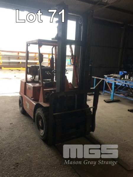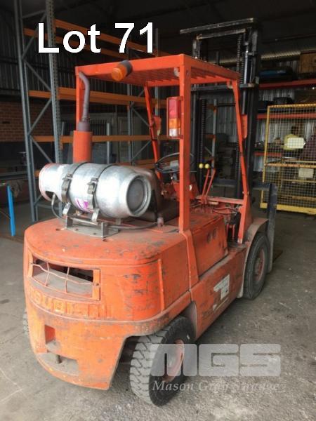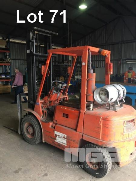 MITSUBISHI FORKLIFT, DOM: 3/85 HOURS: 4,109 LPG, 4 CYLINDER 2 STAGE MAST 5,000LB RATED PNEUMATIC TYRES