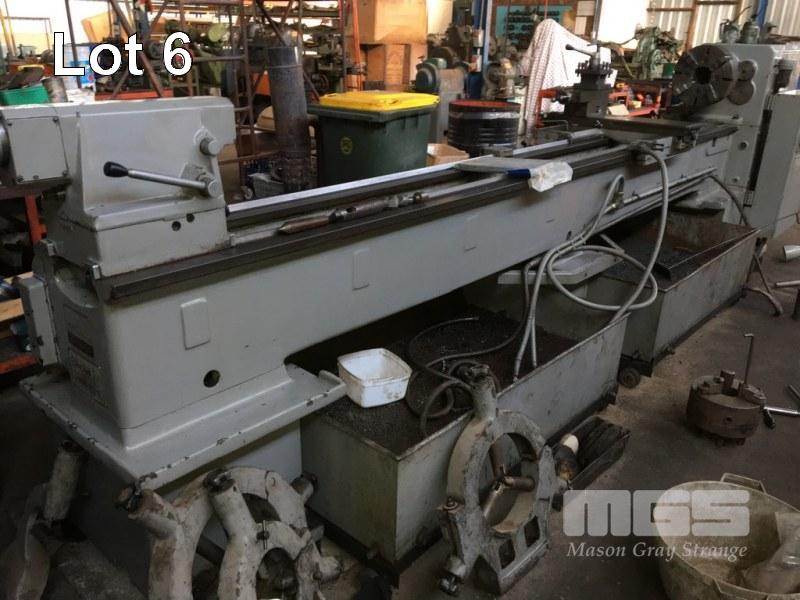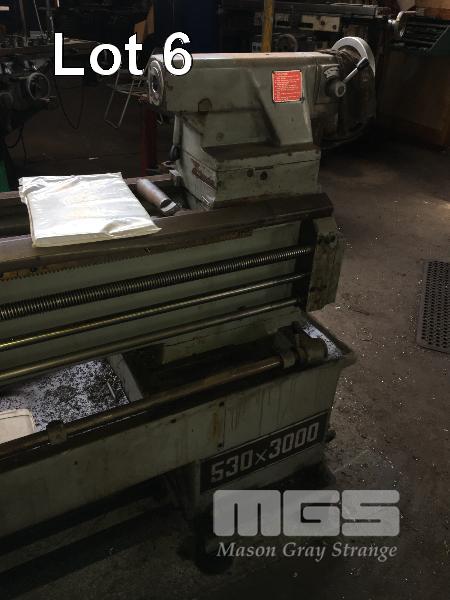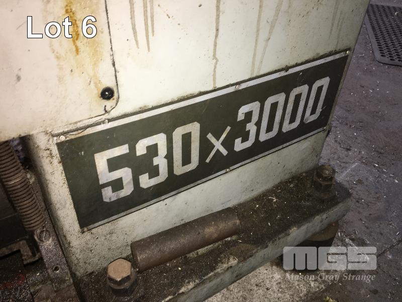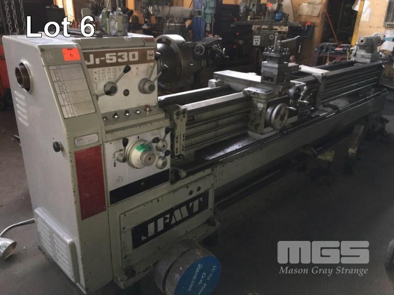 LATHE, JFMT MOD: JI-530 (530 x 3000) BED LENGTH: 3000mm (BETWEEN CENTRES) SWING OVER BED: 530mm (MAX DIAMETER) SWING OVER GAP: 640mm (MAX DIAMETER) SPINDLE BORE: 80mm 415V WITH 3 & 4 JAW CAM LOC CHUCKS, FACE PLATE 4 x STEADIES & GEAR SET