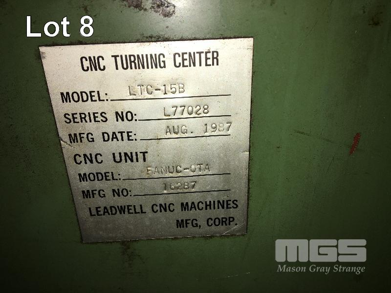 CNC LATHE, LEADWELL MOD: LTC-15B DOM: 08/1987 SWING: 480mm BED CAP: 450mm BAR CAP: 51mm DIAMETER CNC UNIT, FANUC-OTA WITH SWARK CONVEYOR