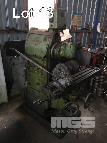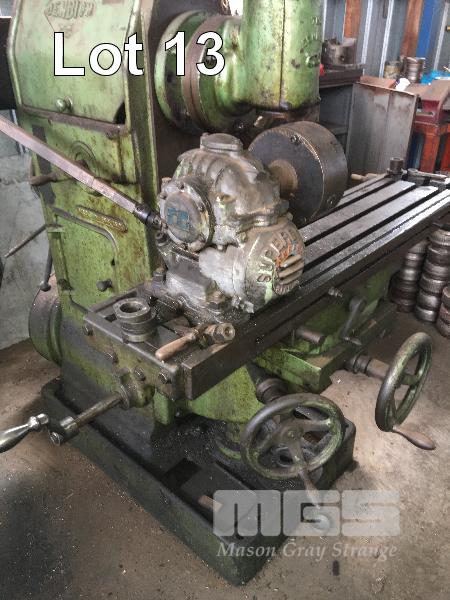 UNIVERSAL MILL, HORIZONTAL/VERTICAL, DENBIGH TABLE SIZE: 1160 x 255mm FITTED WITH SUPER DRIVE RIGHT ANGLE DRIVE UNIT 415V