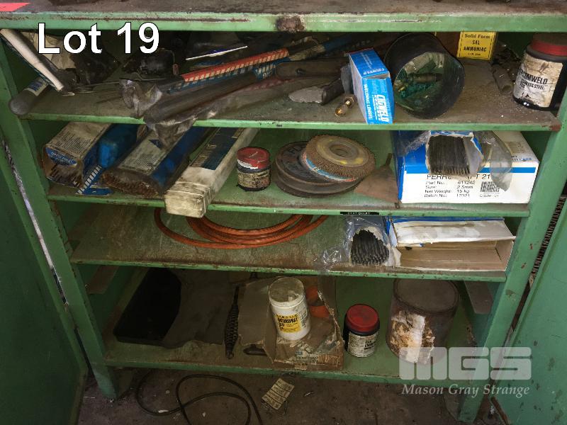 STEEL 2 DOOR STOCK CUPBOARD, 100 x 60 x 93cm WITH ARC WELDING RODS, BRAZING FLUX & RODS
