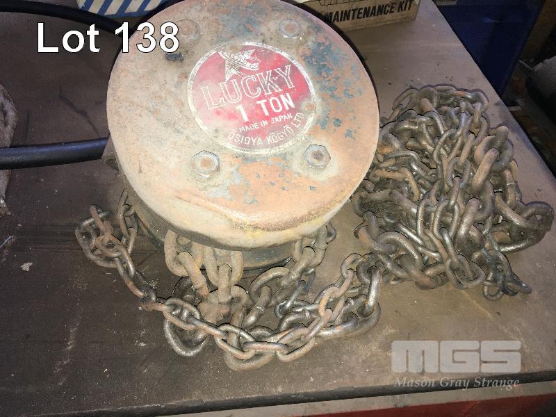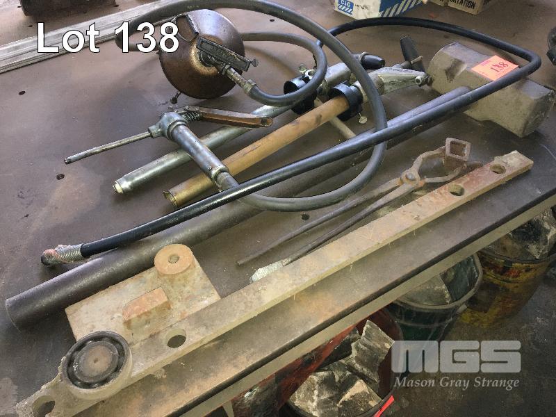 OLD 28LB SLEDGE HAMMER, CRANK HANDLE, HAND GRIP & 2 x DRUM PUMPS, GREASE HAND PUMP SUIT DRUM & LUCKY CHAIN BLOCK, 1 TONNE