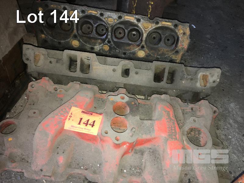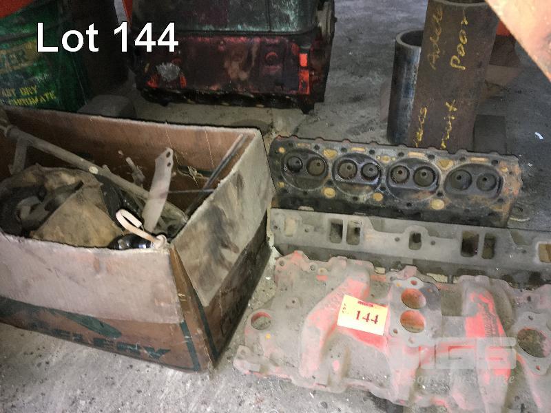 283 CHEV V8 ENIGINE CIRCA 1963 IN PIECES, RODS, PISTONS, BLOCK, CRANK SUMP, CAM SHAFT HEADS & MORE
