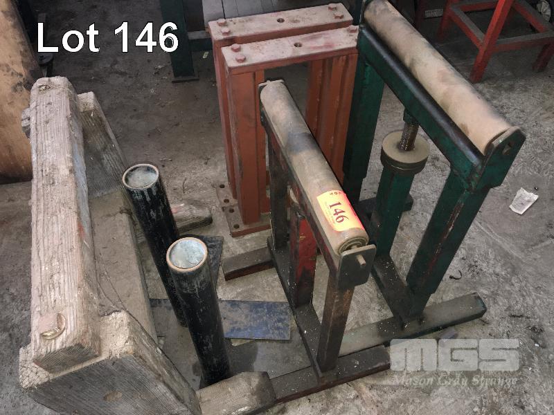 2 x ADJUSTABLE ROLLER STANDS, 400 & 380mm (W), PLUS 2 x SOLID STEEL STANDS & 2 x PIPE STANDS