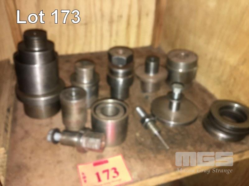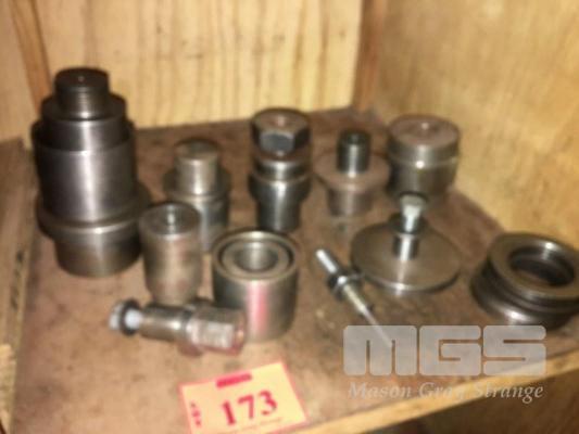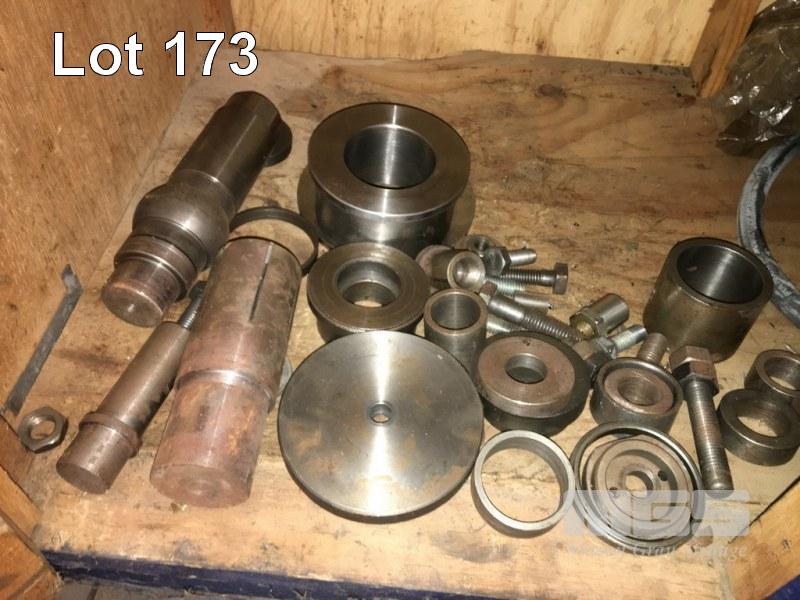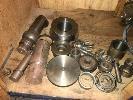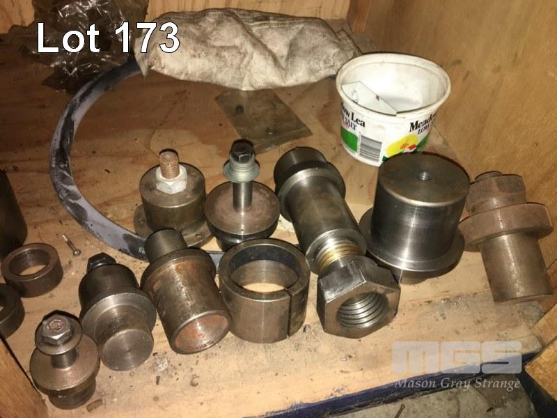 ASSORTED MACHINE TOOLING INCLUDING DOLLIES, SHAFTS, PLATES & SPACERS, ASSORTED SIZES 2 x SHELVES