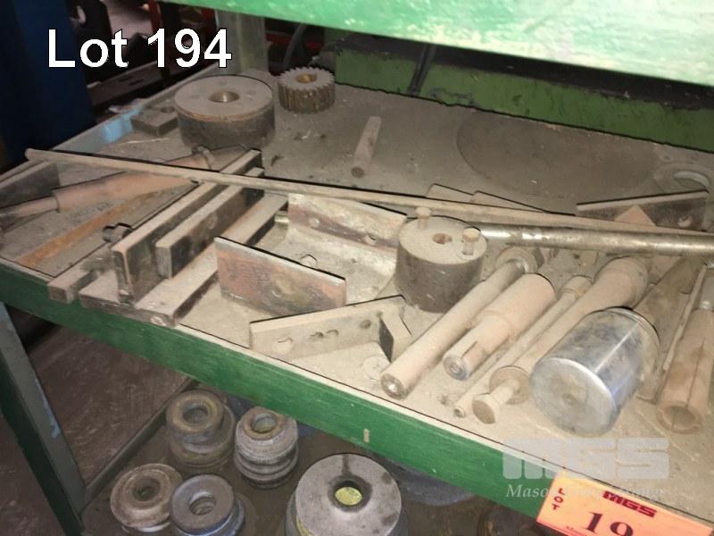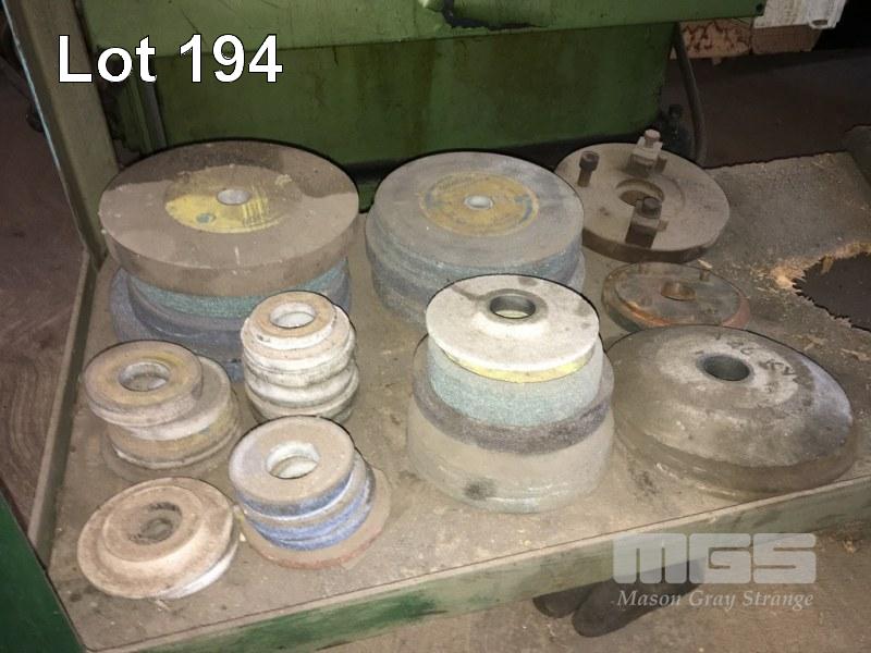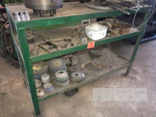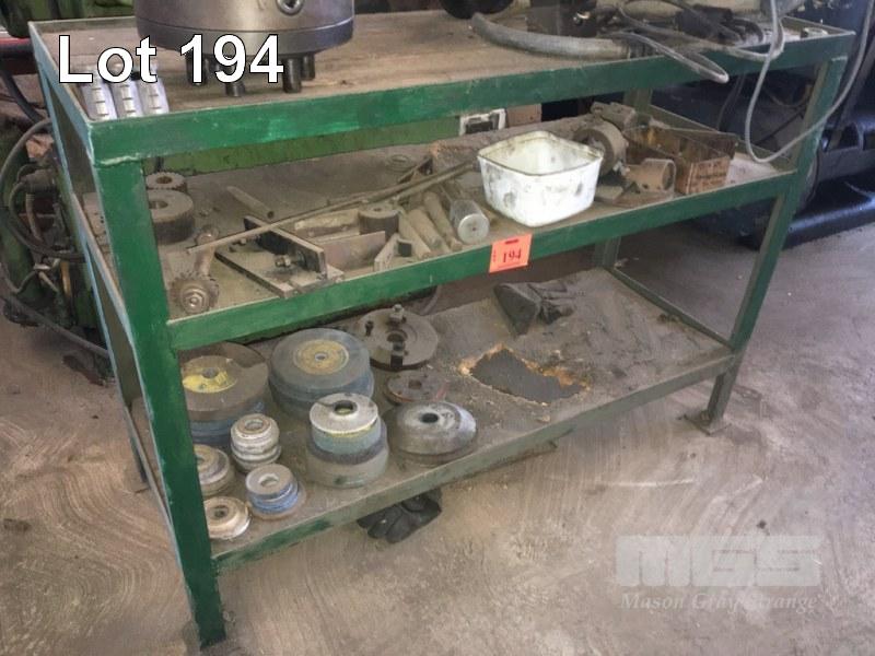 WORKSHOP RACK, STEEL FRAME, 3 TIER, 1220 x 450 x 870mm (H) & ASSORTED GRINDING WHEELS, TOOL HOLDER, ETC