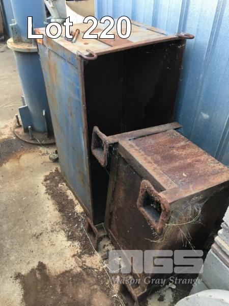 2 x STEEL STILLAGES/METAL BINS, HEAVY DUTY, 520 x 600 x 1000mm & 430 x 450 x 660mm