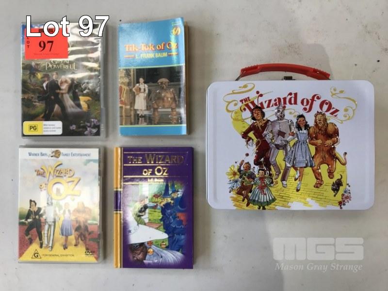 2 x WIZARD OF OZ DVDS, 2 x WIZARD OF OZ BOOKS, WIZARD OF OZ LUNCH BOX