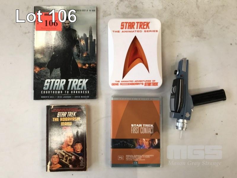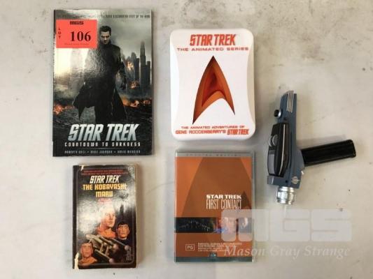 2 x STARTREK DVDs, 2 x STAR TREK BOOKS, STAR TREK PISTOL