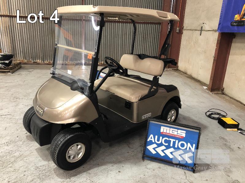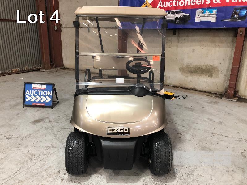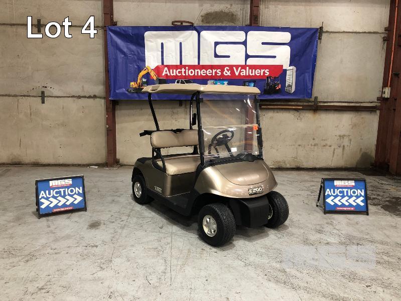ELECTRIC GOLF BUGGY, TEXTRON COMPANY, E-Z-GO MOD: RXV 2 x SEAT, 2 x BAG, WITH DELTA TECHNOLOGIES QUIQ HF/PFC BATTERY CHARGER 48V, 4 x LEAD CRYSTAL 6-EVFJ-120, 12V BATTERIES MINOR SCRATCHES & SEATING WEAR