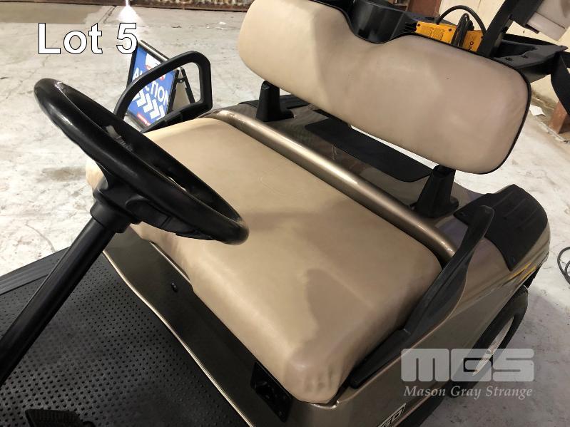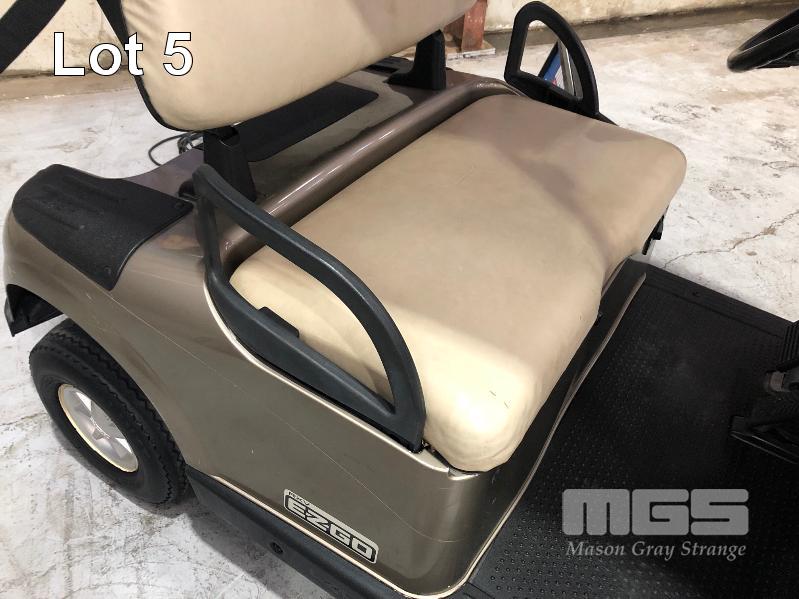 ELECTRIC GOLF BUGGY, TEXTRON COMPANY, E-Z-GO MOD: RXV 2 x SEAT, 2 x BAG, WITH DELTA TECHNOLOGIES QUIQ HF/PFC BATTERY CHARGER 48V, 4 x LEAD CRYSTAL 6-EVFJ-120, 12V BATTERIES MINOR SCRATCHES & SEATING WEAR