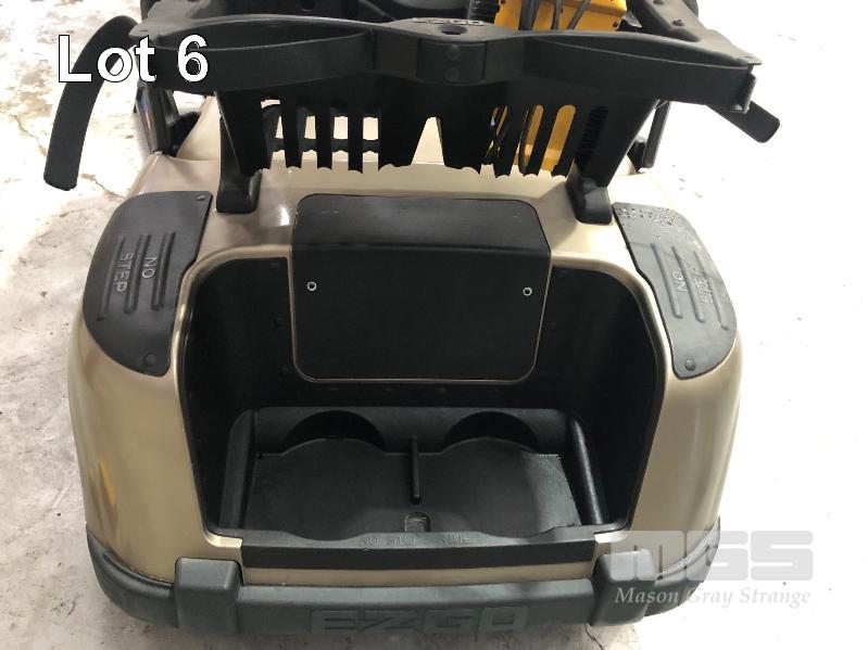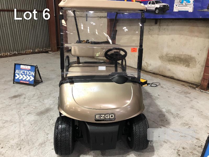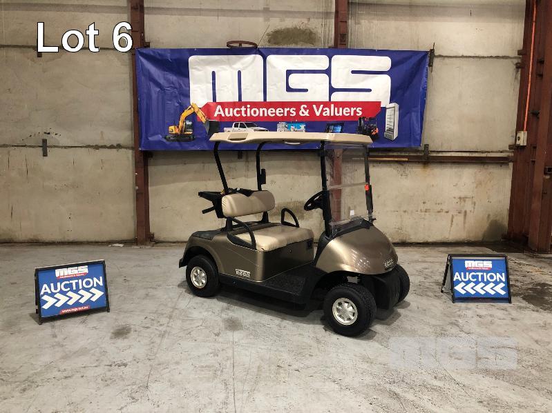 ELECTRIC GOLF BUGGY, TEXTRON COMPANY, E-Z-GO MOD: RXV 2 x SEAT, 2 x BAG, WITH DELTA TECHNOLOGIES QUIQ HF/PFC BATTERY CHARGER 48V, 4 x TROJAN T-1275+ 12V BATTERIES MINOR SCRATCHES & SEATING WEAR