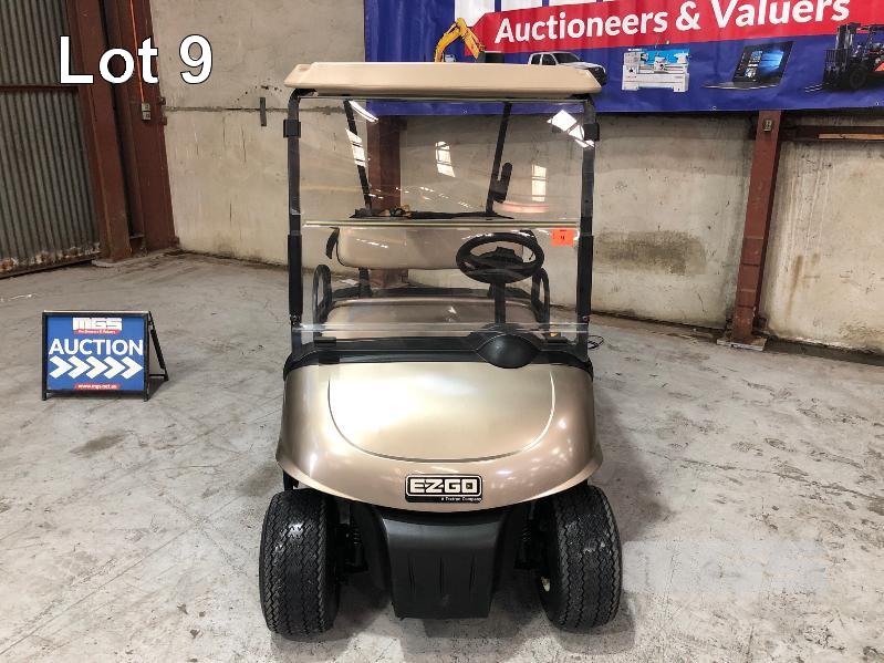 ELECTRIC GOLF BUGGY, TEXTRON COMPANY, E-Z-GO MOD: RXV 2 x SEAT, 2 x BAG, SAND BOTTLE, WITH DELTA TECHNOLOGIES QUIQ HF/PFC BATTERY CHARGER 48V, 4 x TROJAN T-1275+ 12V BATTERIES MINOR SCRATCHES & SEATING WEAR