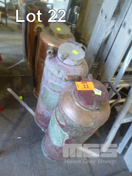 3 x VINTAGE BRASS/COPPER SIMPLEX FIRE EXTINGUISHERS