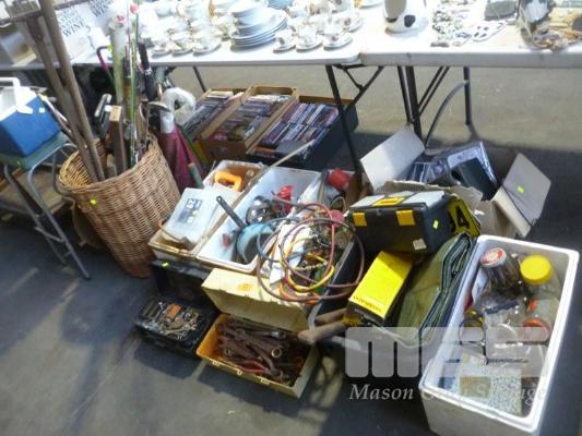 CANE BASKETS & CONTENTS, ASSORTED TOOLS & HARDWARE ETC.