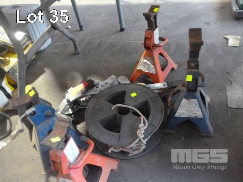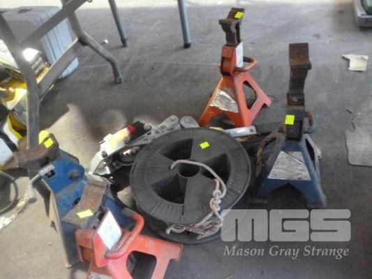 2 x SETS CAR STANDS, WIRE REEL & WIRE FENCE RATCHET