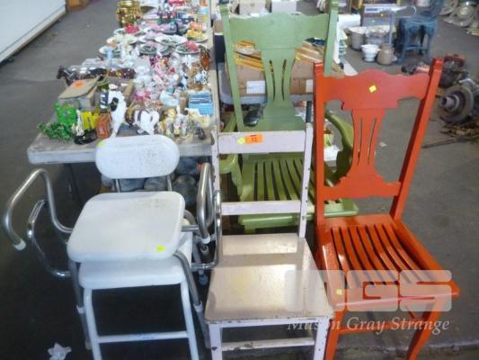 3 x TIMBER CHAIRS & 2 x SHOWER CHAIRS