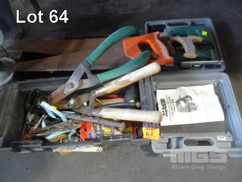 TOOLBOX, ASSORTED HAND TOOLS & JIGSAW