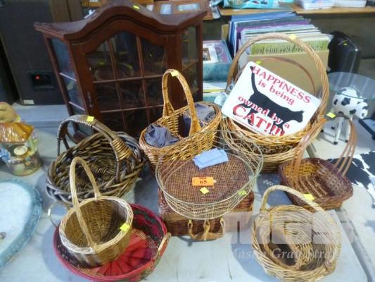 CANE BASKETS & WALL MOUNT DISPLAY CABINET