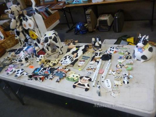 ORNAMENTAL COW ITEMS INCLUDING MAGNETS & WALL HANGERS ETC - 1 TABLE.