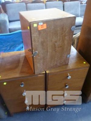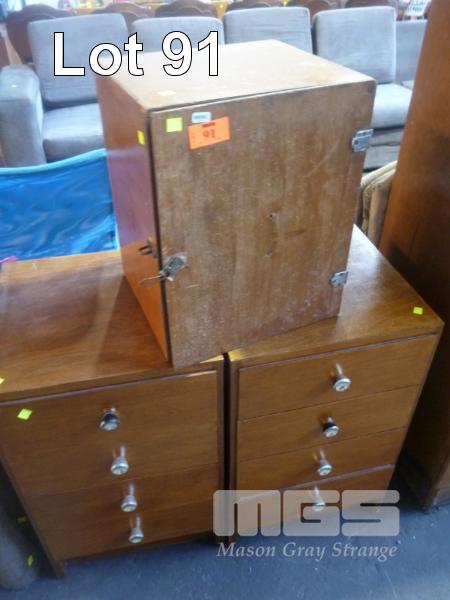 2 THREE DRAWER BEDSIDE CABINETS AND A STORAGE CABINET